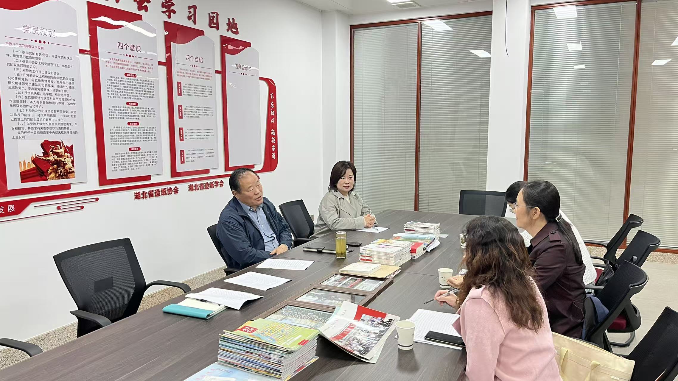 2025年10月30日,湖北省科学技术协会学会信息服务中心副主任聂海林、一级主任科员赵晶及党建工作部张院容一行莅临湖北省造纸学会开展调研工作。学会副会长顿志强、办公室主任李勇刚及秘书处马娟等参与接待并汇报工作。